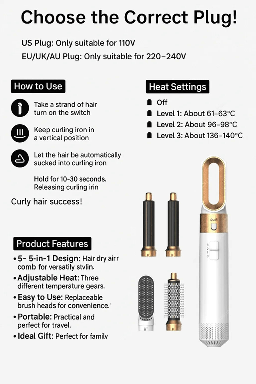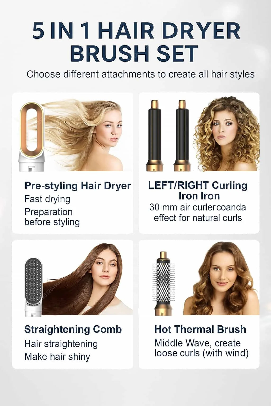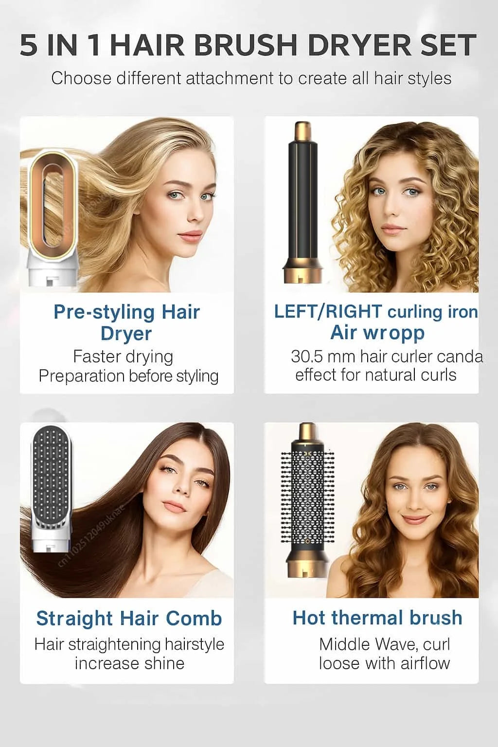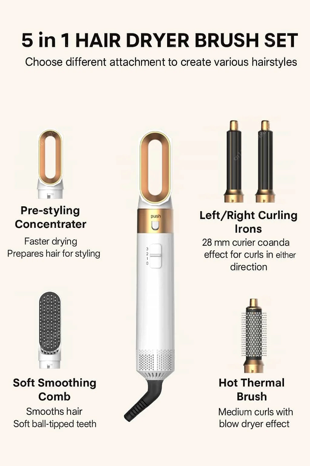 5-in-1 Profi-Heißluftbürste – Volumen, Glätten & Locken