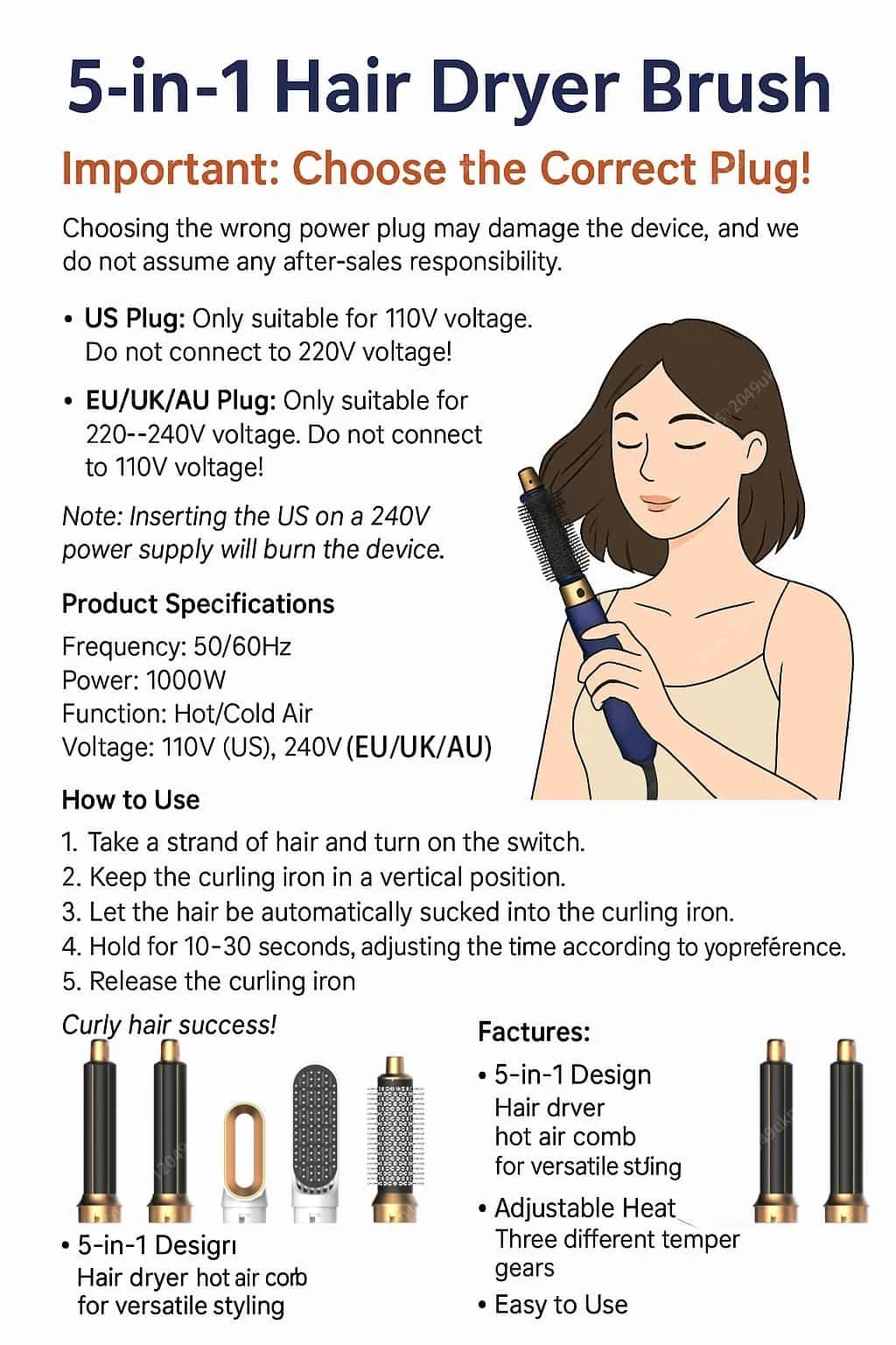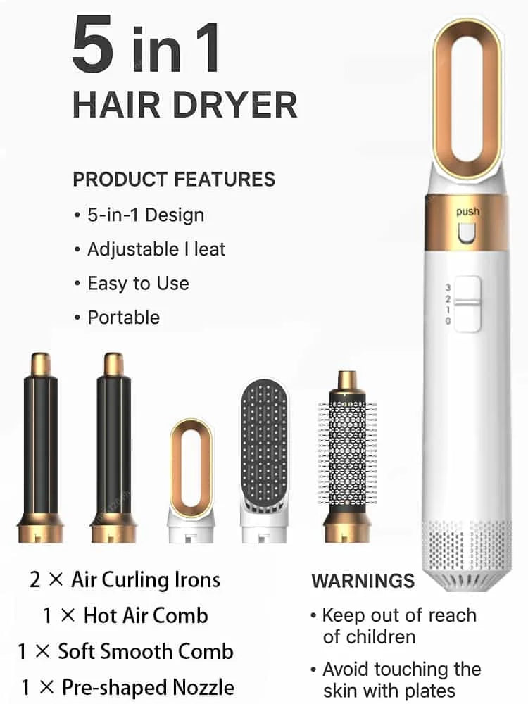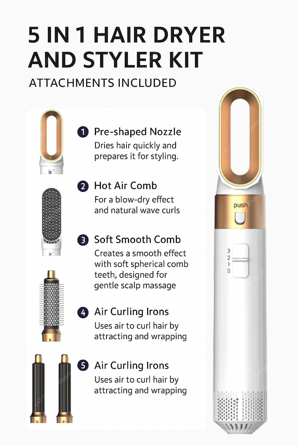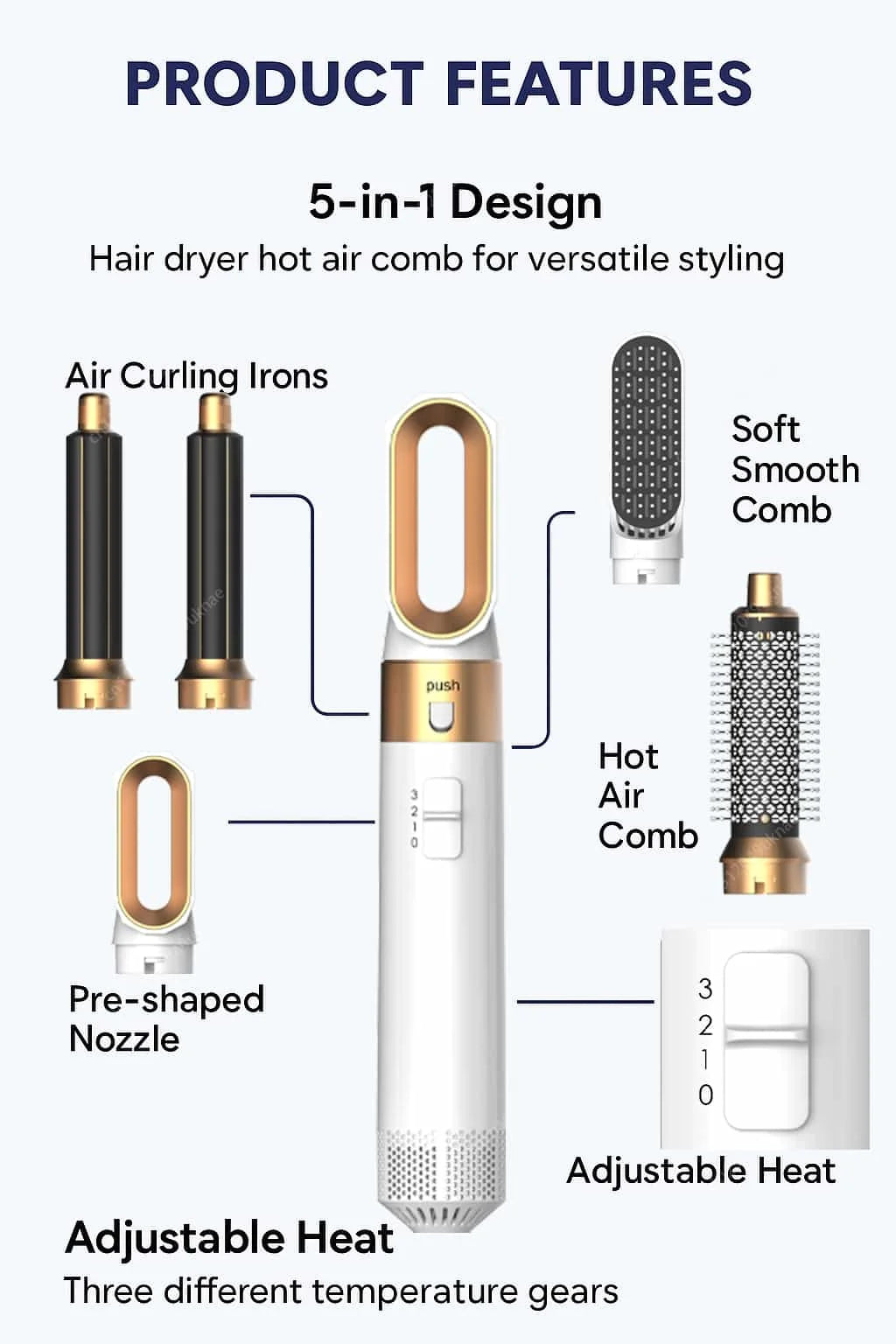 5-in-1 Profi-Heißluftbürste – Volumen, Glätten & Locken